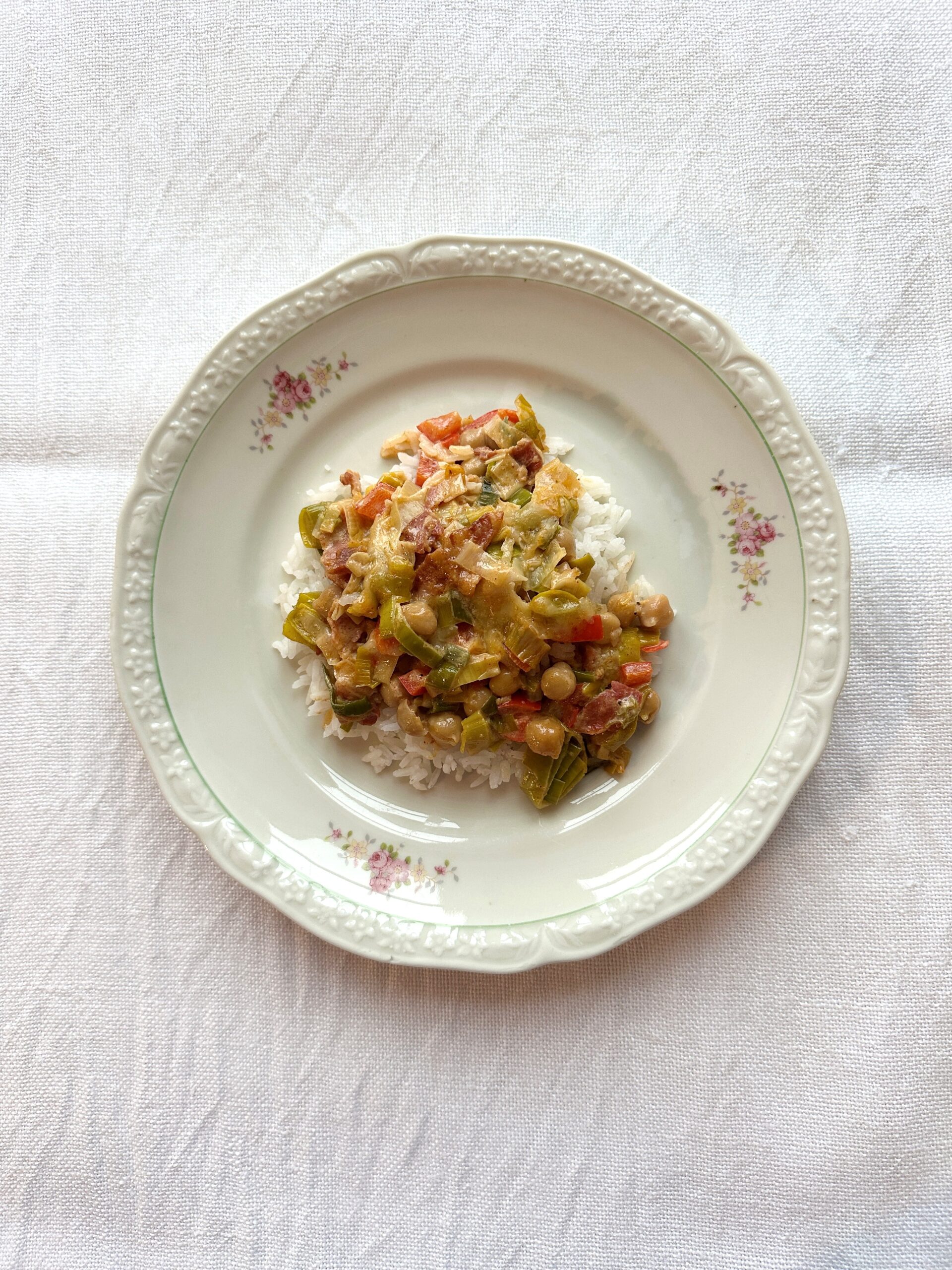 Det blev så lækkert, og ved at bruge kikærter i stedet for kylling kan du spare mange penge og samtidig få spist en del af den mængde bælgfrugter som Fødevarestyrelsen anbefaler (de anbefaler 100 g. tilberedte bælgfrugter om dagen).